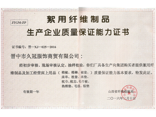 山西久冠服飾有限公司位于晉商故里山西省晉中市。公司注冊商標(biāo)“久冠”,是山西省教育學(xué)會(huì)學(xué)生服被裝專業(yè)委員會(huì)會(huì)長單位,中國質(zhì)量萬里行促進(jìn)會(huì)理事單位,中國教育裝備行業(yè)協(xié)會(huì)學(xué)校后勤裝備管理分會(huì)常務(wù)理事單位。